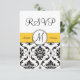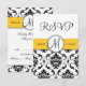 Black Damask Yellow Wedding RSVP Card