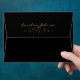 Dark Black Moody Wedding Invitation Envelopes with Floral Photo Liner. Gold coloured Script Text is fully customisable. Vintage faded Flowers. This envelope has a return address on the back top flap. Delete text if not needed. Moody, Dramatic and Romantic.
