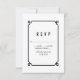 Simple and minimalist Deco Chic Wedding RSVP Card with a modern black art deco ornamental border. This classic and elegant response card is easy to customise with your wedding details. Find more personalisation options by clicking Customise.