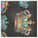 Decorative Royal Crowns repeat pattern Design on Black Background. #fabric, #crown, #crownfabric