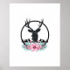 Black Deer Head w/ Pink Flowers & Mountains Poster