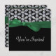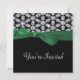 Black & Diamond Mosaic Green Bow Wedding Invitation