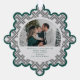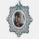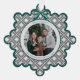 Send warm holiday wishes in style with this elegant preppy Christmas ornament featuring a classic black diamond pattern and turquoise with charming coquette bows that beautifully decorates your family photo.