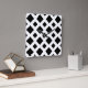 A bold, geometric pattern of large and small black diamonds on a white background. The white forms a lattice which separates the diamond shapes.