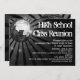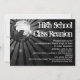 Sparkling-look silver disco ball with rays of light and starry background in black and white colour scheme. Celebrate the high school class reunion of 10 years, 15 years, 20 years and more with a cool dance party at a party hall. This festive invitation is perfect for inviting the whole class.