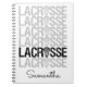 Bold letters spell out the word "LACROSSE" with the "O" replaced by a basket. The slightly distressed design makes a great personalised gift for a player, coach, team or fan. Available in red, orange, yellow, purple, green, blue, grey, black, forest green, navy, maroon, burnt orange, gold and powder blue. Matching products available.