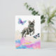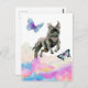 Black Dog Jumping Over Rainbow Clouds Postcard