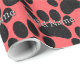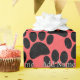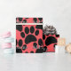 Cartoon dog paw print in black. Custom gift wrapping paper rolls. Red background with distressed effect applied the pattern. Edit name to customise. Good for party decor.