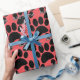 Black Dog Paw Print Custom Name Distressed Red Wrapping Paper