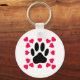 Black Dog Paw Print With Heart Shapes Key Ring
