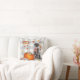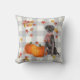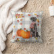 Black Dog with Pumpkins Falling Leaves Gray Check Cushion