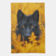 This beautiful black dogs eyes match the fields of goldenrod that he sits in.