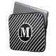 monogrammed black and white diagonal striped laptop sleeve