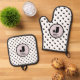 Black Dots Custom Monogram Oven Mitt & Pot Holder Set