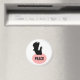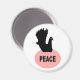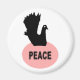 This magnet features a black silhouette of a fancy dove with a white eye, sitting on a pink oval shaped nest with the word peace written in black in the center of the nest. The background is white but can be changed to any color you like by clicking on the “customize it” button. This magnet would be great for the fridge or dishwasher. Remind the family that a little peace once in a while would be no bad thing.