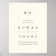 Welcome your wedding guests in elegant style with this monogram welcome sign in warm ivory ecru with your initials in traditional serif black lettering, bisected by a thin vertical line. Customise with your names and wedding date.