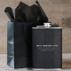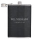 A sleek and sophisticated gift for any professional, this black custom flask features a textured background and a clean silver gradient line that separates the name or firm from the title. Personalised with the recipient’s name and year at the bottom, it makes a thoughtful and stylish gift for attorneys, law school grads, or colleagues in any corporate field. Whether it’s for celebrating milestones or adding a refined touch to a bar cart, this flask combines modern design with personal charm.