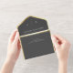 AVAILABLE WITH OR WITHOUT A QR CODE OR WITH OR WITHOUT DINNER SELECTION OPTIONS. This design features a soft, dark charcoal background edged in faux gold foil with the bride and groom's monogram. Created by Simply Farmhouse Press.