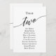 This is an elegant script table number. This table number is double sided. You'll only need to type in the names on one side. They'll be copied automatically on the other one.