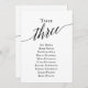 This is an elegant script table number. This table number is double sided. You'll only need to type in the names on one side. They'll be copied automatically on the other one.