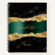 Black, emerald green and faux gold, agate, marble stone print as background. Personalise and add your name and a year. The name is written with a modern hand lettered style script.