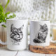 Black Engraved Cat Head Sketch Art Coffee Mug