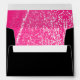 Modern black envelopes with return address gold text with hot pink glittery liner. Elegant and sparkly inside.