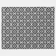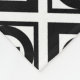 Bold geometric pattern features alternating thick and thin black diamonds with white space between them. The thick diamonds each contain a thin black circle with a thick equal sign at an angle inside. In contrast, the thin diamonds each contain a thick black circle that touches its edges with a thin tilted equal sign inside.