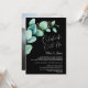 Invite your friends and loved ones to your post-wedding reception with this watercolor green eucalyptus leaves black invitation featuring an image of the happy couple on the reverse side to celebrate your recent marriage.