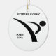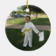 Great martial arts Christmas ornament for the fighter you know. The front features a silhouette of a karate kick in black. Below the drawing is a custom space for a name and year. The back has a space for a custom photograph of your choice.