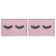 Pair of black eyelashes on white pin dots and a pastel blush pink background.