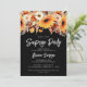 Black and White Fall Floral surprise birthday party invitation for a fun birthday party in autumn.