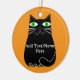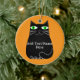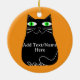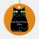 Black Fat Cat With Green Eyes Custom Text Ceramic Ornament