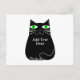 Black Fat Cat With Green Eyes Custom Text Postcard