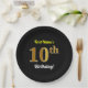 Black, Faux Gold 10th Birthday + Custom Name Paper Plate