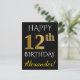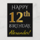 Black, Faux Gold 12th Birthday + Custom Name Postcard