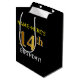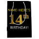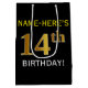 Black, Faux Gold 14th Birthday + Custom Name Medium Gift Bag