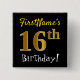 Black, Faux Gold 16th Birthday, With Custom Name 15 Cm Square Badge