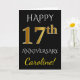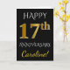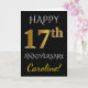 Black, Faux Gold 17th Wedding Anniversary + Name Card
