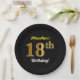 Black, Faux Gold 18th Birthday + Custom Name Paper Plate