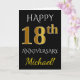 Black, Faux Gold 18th Wedding Anniversary + Name Card