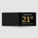 This guest book design features the ordinal number "21st" with a faux/imitation gold-like appearance. It also features a personalised name, and a black coloured background. It could be used at a party for somebody celebrating their twenty first birthday. [~Z0000054]