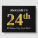 Black, Faux Gold 24th Birthday Party + Custom Name Guest Book