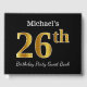 Black, Faux Gold 26th Birthday Party + Custom Name Guest Book