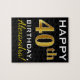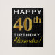 Black, Faux Gold 40th Birthday + Custom Name Jigsaw Puzzle