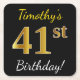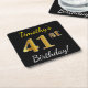 Black, Faux Gold 41st Birthday + Custom Name Square Paper Coaster