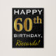 Black, Faux Gold 60th Birthday + Custom Name Jigsaw Puzzle