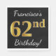 Black, Faux Gold 62nd Birthday + Custom Name Napkin