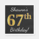 Black, Faux Gold 67th Birthday + Custom Name Napkin