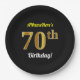 Black, Faux Gold 70th Birthday + Custom Name Paper Plate